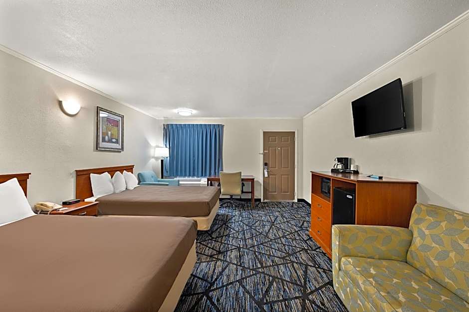 Room options are varied to fit solo travelers, couples, and larger groups. The Run Of House can accommodate up to 10 adults and 6 children, perfect for families traveling together; the Room - 3 Bed sleeps 4 adults and 3 children. For smaller crews, there are King Rooms (including a Smoking Allowed option) and Queen Rooms; family configurations include the King/2 Queen Room (1 King, 2 Queen beds) and the Suite with Jetted Tub (1 King bed and 1 Sofa Bed).